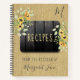 A charming rustic farmhouse recipe organizer cooking book with vintage wood and yellow gold sunflowers bouquets over a burlap like background. ++++++++++ Personalize it with chef monogram, name and your text! +++++++++ It can be a modern personal blank recipe journal book for your kitchen, a grandma's family cookbook, or a beautiful custom keepsake gift for a bridal shower, wedding, or family anniversary.