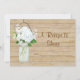 This 5" x 7" card is designed for the guests to share their favorite recipes with the bride and groom. You can send it with the invitation and ask them to fill it out and return it to the bridal shower. I great idea is to have a raffle from those who shared a recipe to encourage participation. This Rustic Country Farm Floral Style Wedding Invitation Set was created from hand painted watercolor artwork created by Audrey Jeanne Roberts. The jar was delicately watercolored in a soft aqua blue green and filled with a bouquet of blue hydrangeas and white poppies in a lovely soft pastel blue that were hand picked in Audrey Jeanne's own gardens and hand painted. Vintage style jelly jars are a very trendy design style for boho chic weddings. The background is a grey weathered pine board fence that is aged and distressed to convey the outdoor, barn style wedding feel. Available with other floral color combinations - just email us. Chances are we can match your specific wedding colors. The reverse side is the same fence boards.