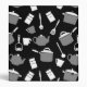 Modern recipe binder for organizing your family's recipes, meal planning or other subject. Features a kitchen utensil pattern in a modern black and white color palette with gray accents with custom text in a coordinating white banner with complimentary accents and text.