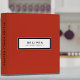 Modern cookbook recipe binder features a minimal design in a red, black and white color palette. "Recipes" and custom family name presented in simple font in a white window with a coordinating frame.
