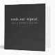 A simple stylish custom recipe binder design with minimalist typography "cook. eat. repeat." in simple white on a charcoal gray background. The text can easily be personalized to make a design as unique as you are! The perfect bespoke gift or accessory! #recipes #binder