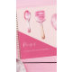 Light pink and pink bacground. Decorated with pink kitchen utensils on the front. Personalize and add a text/name