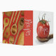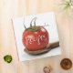 Single tomato sitting in an old wooden spoon on the cover and background of wooden spoons on back.