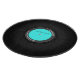 This fun design features a black vinyl record album with a turquoise label. Easily customize the label text.