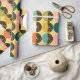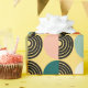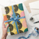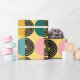 This wrapping paper has a mid-century modern design of solid semi-circles matched with black and white concentric semi-circles, all on a gold background. If you like the design but prefer different colors, message me.