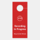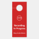 Whether you record podcasts, audiobooks, or something else, interruptions are definitely unwanted. Stop them with a do not disturb door hanger. A STOP sign is above the text. Recording in progress is in white text on this red door hanger. Additional text that says Please Do Not Disturb. There's also an image that you can replace with your business logo. All text can be edited or deleted.
