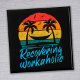 Ideal for your summer vacation or just to help relax after a long day at work. Recovering workaholic features a topical island complete with a hammock slung between palm trees, all set against a distinctive retro sunset.