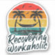 Ideal for your summer vacation or just to help relax after a long day at work. Recovering workaholic features a topical island complete with a hammock slung between palm trees, all set against a distinctive retro sunset.
