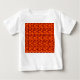 This baby t-shirt has a md-century modern design of maroon rounded rectangles connected together on a field of orange.