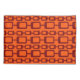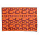 This pillowcase has a md-century modern design of maroon rounded rectangles connected together on a field of orange.