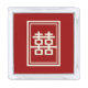 Minimalist classic double lined red / ivory rectangle double happiness on a ivory white / cream / beige / red background chinese wedding lapel pin / gift design.