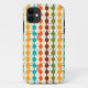 This phone case has a mid-century modern design of rounded rectangles with holes as a background with rounded chains in the foreground all in MCM colors. If you like the design but prefer different colors, message me.