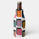 This bottle cooler has a Bauhaus design of rectangles with designs inside and their shadows behind.
