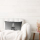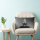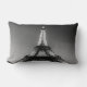 A rectangular cushion with a photograph in black and white of the Eiffel Tower to the sunset