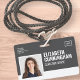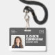 A modern and simple badge that does not distract from the important details. Easy to read from afar. Add a custom logo and company/hostpital/clinic details. Add the employee's name, photo, and professional title. The bar of color can be modified to match the company's official colors. At the back, add more information such as return address and the employee's ID number. Perfect for rectangular shaped logos.