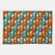 Rectangular plates carved and stained, orange cyan kitchen towel
