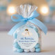 Celebrate your child's Catholic Christening with these stickers showcasing a boy angel and a chalice on a cloud. Ideal for religious Baptism favors. Available in spanish.