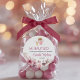 Add charm to your Catholic Baptism favors with this Christening sticker featuring a cute girl angel and a chalice, adorned with pink flowers. Available in spanish.