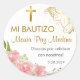 Celebrate your child's christening with this elegant Catholic baptism sticker adorned with pink flowers. Ideal for religious favors. Available in spanish.