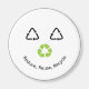 Chasing arrows, recycling logo plus text form a funny face. People won't forget this message. This magnet allows you to promote recycling in style and with humor!