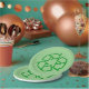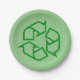 These custom paper plates have a green recycling sing. This design can be personalized with a name or customized with your own unique message.