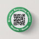 Recycling badge. Recycle and Renew. Button badge to encourage recycling with QR Code. Personalize with your own choice of wording top and bottom.
