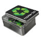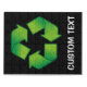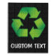 Recycling symbol with woodcut shade over black background. Custom text.