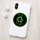 Recycling symbol with woodcut shade. Two custom text fields on circle.