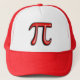 It's a very cool red 3D style Pi Symbol graphic hat! Perfect for Pi Day this March 14th!