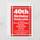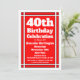 Having your Red 40th Birthday Invitation match the theme of your party is a great detail that your guests will appreciate. The thoughtfulness of a consistent party theme is often appreciated and can show your guests that you can host a cohesive event.