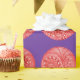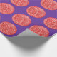 For a unique and festive look, a red and white abstract drawing of a Christmas ball is tiled on wrapping paper. The background color of purple can be customized.