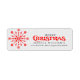 Cute red abstract christmas snowflake illustration over customizable white background color. Fully customizable christmas return address label.