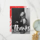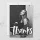 Modern graduation thank you card featuring the graduate's photo with "grad" in a white brush script overlay. Personalize the front of the graduation thank you card by adding the graduate's name, school, name, and graduation year. The back of the card features space for your typed or handwritten message with a background of painted red brushstrokes.