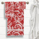 Add a touch of elegance to your holiday season with this enchanting abstract Christmas pattern. Featuring delicate swirls and snowflakes in pristine white against a bright red background, this design captures the magic of a winter wonderland. The combination of bold colors and intricate patterns makes it a perfect choice adding a pop of color to your holiday. To personalize, add a name or other text to this beautiful bath towel design. Search ID1009 to see other products and patterns in this color scheme.