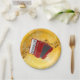 Red Accordion, Musical Notes on Gold Background Paper Plates