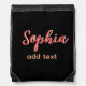 Red add name girl boss text black elegant drawstring bag