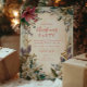 A bold and festive Christmas design framed with vibrant red amaryllis blooms, winter greenery, and golden accents. This elegant seasonal artwork is perfect for sending warm holiday cheer with timeless style. Ideal for those who love classic florals with a luxurious Christmas feel.