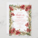A bold and festive Christmas design framed with vibrant red amaryllis blooms, winter greenery, and golden accents. This elegant seasonal artwork is perfect for sending warm holiday cheer with timeless style. Ideal for those who love classic florals with a luxurious Christmas feel.