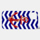 This vibrant nautical design features a red anchor on a navy blue and white chevron stripe pattern.