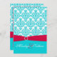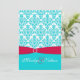 Red and Aqua Damask Wedding Invitation