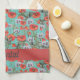 Red and Aqua Poppies Pattern Personalized Kitchen Towel