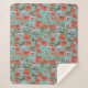 Red and Aqua Poppies Pattern Sherpa Blanket