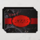 Red and black graduation invitation with light and dark red floral and a red ribbon going across showing the year of graduation. The back of the card is black with light red font for people to fill in the graduation announcements.