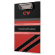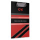 This is a personalized clipboard with a red and black color scheme.