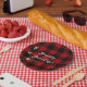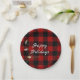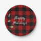 Red and black buffalo Happy Holidays in snow Paper Plates