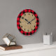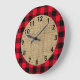 Red and Black Buffalo Plaid Burlap Circle Large Clock