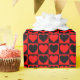 A wrapping paper built with a red and black checkered pattern with hearts. Customize the black background color among several options.