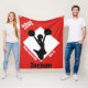 Cheerleader themed fleece blanket done in red and white with graphics of a black cheerleader silhouette. Personalize all the text to suit your needs. Great way to stay warm during the game.