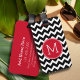Red and Black Chevron Pattern Custom Monogram Luggage Tag