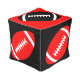 Red and Black Football Player Game Room Square Pouf Bean BagChair: Red footballs with a black background on the sides, and black footballs with a red background on the top and bottom. Makes a great gift for football players, coaches and fans, especially of team with red color schemes. Custom text can be added and the background color can be changed by clicking the “customize” button.